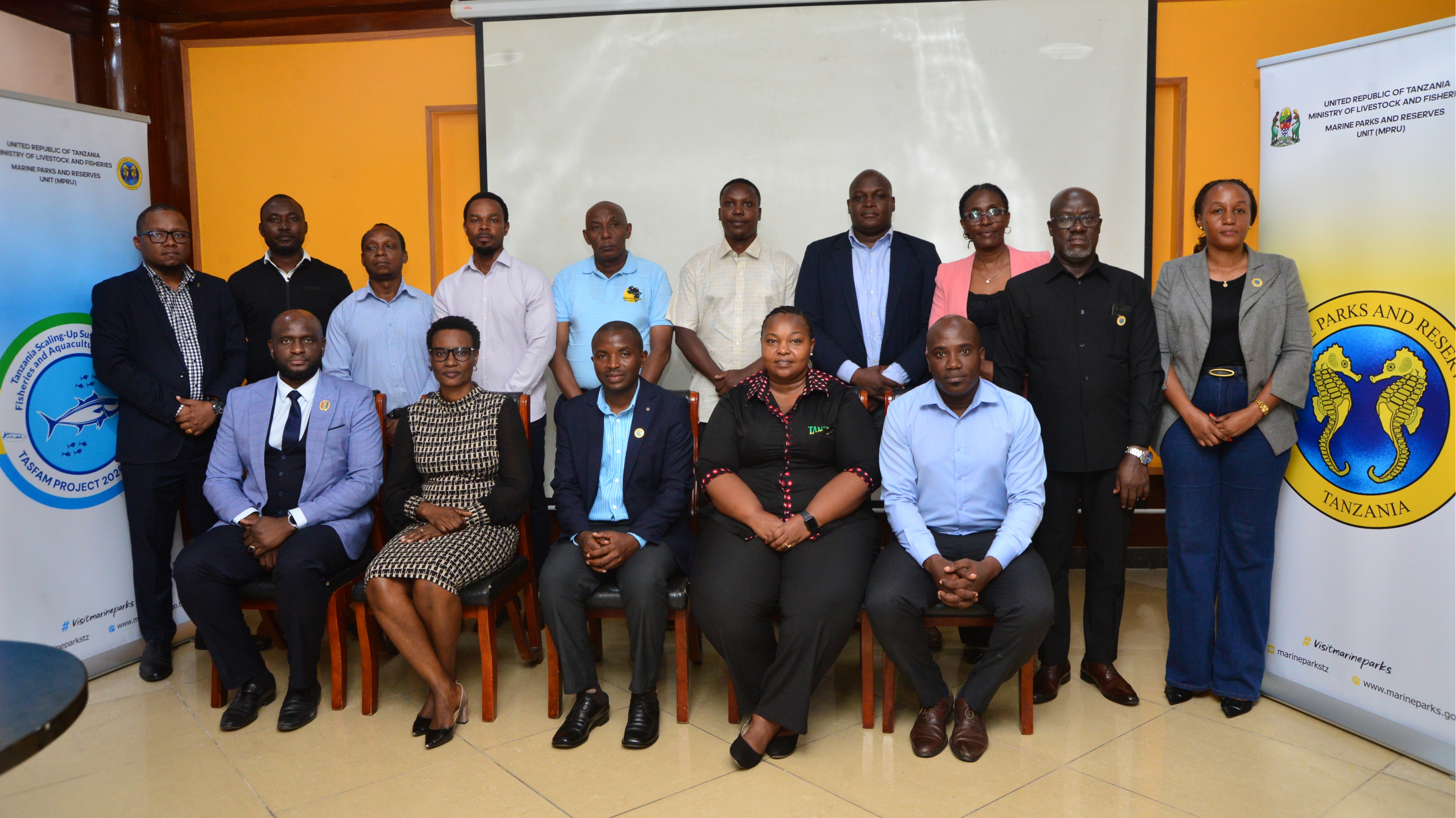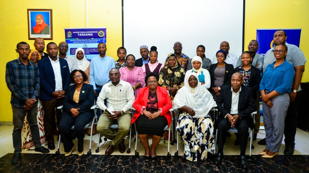 Picha ya Pamoja ya Watumishi wa Hifadhi za Bahari na Maeneo Tengefu (MPRU) mara baada ya kumalizika kwa Hafla ya Makabidhiano ya Ofisi kwenda kwa Meneja Mteule Dkt. Emmanuel Swege (wakwanza, kushoto)...